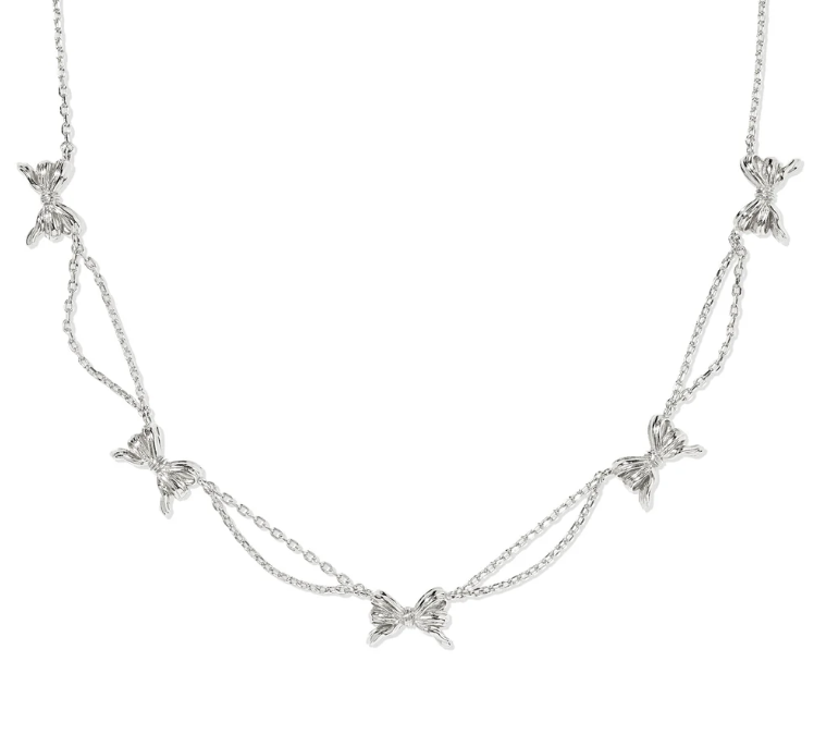 Wrap up your stack with the Bow Silver Strand Necklace. This darling design features ribbon accents on a dainty chain. Layer it with your everyday basics or favorite bow styles for a sweet (and trendy!) look.