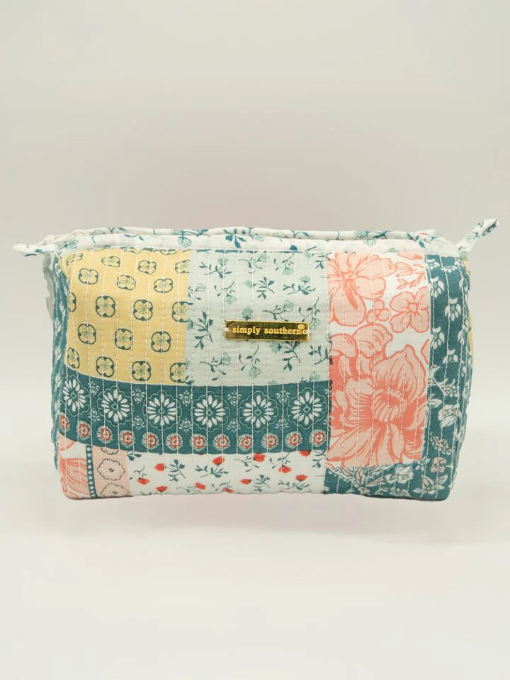 The Quilted cosmetic bag back is your perfect bag for stashing all of your makeup and accessories for your travels. It features one large fully lined compartment with zip closure. Made of 100% cotton shell, 100% cotton lining and 100% polyester filling.