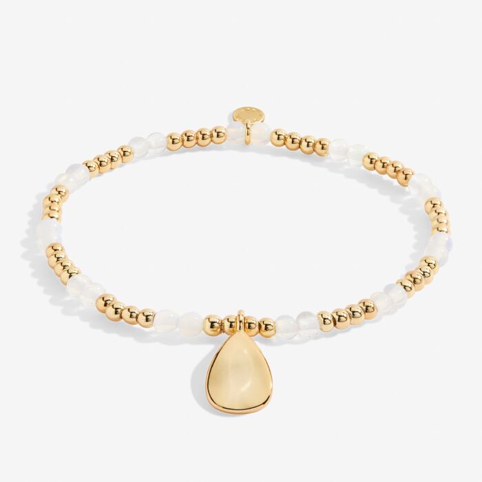 For all June babies, our lovely A Little Birthstone Bracelet radiates beauty with special semi-precious moonstone gemstones, stretch-bead design to fit every wrist, and a beautiful gold-tone plated charm.