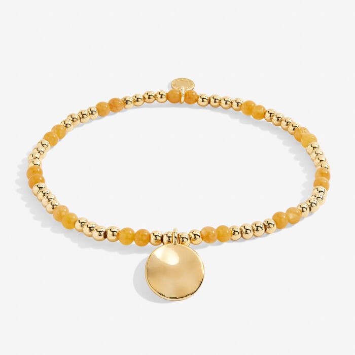 For all November babies, our lovely A Little Birthstone Bracelet radiates beauty with special semi-precious yellow quartz gemstones, stretch-bead design to fit every wrist, and a beautiful gold-tone plated charm.