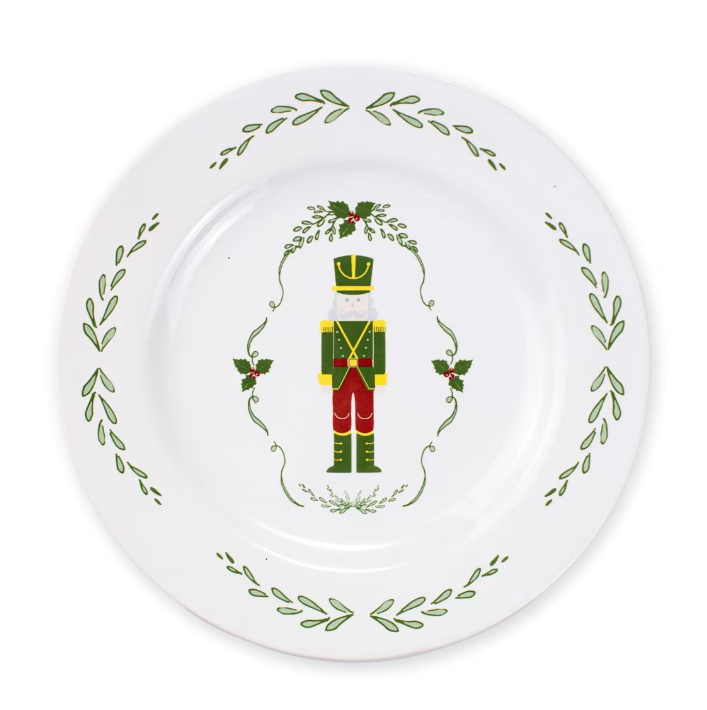 Bring holiday magic to your table with the Nutcracker Waltz Plate. This 8-inch white plate showcases vibrant Nutcracker-themed designs, perfect for festive gatherings or seasonal décor.