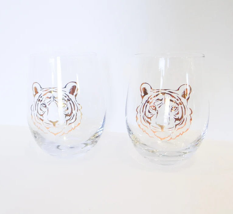 Unleash a fierce touch to your glassware collection with the Tiger Wine Glass Set. Featuring bold, detailed tiger designs, these glasses are perfect for adding personality to any gathering, whether it's a casual night in or a special occasion. Set of 2. 16oz