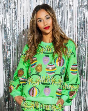 TINSEL LIGHTS ORNAMENTS SWEATSHIRT