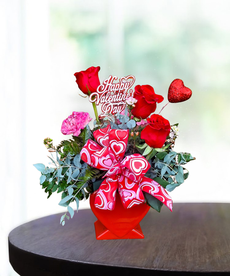 Heart Throb is a fun and vibrant bouquet that captures the thrill of romance, blending traditional red roses with carnations. Whether you choose the standard bouquet or the deluxe that adds a touch of sweetness with Reese's Peanut Butter Cups it will capture her heart this Valentine's Day.