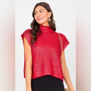A classic staple that every closet needs. The cap sleeve design paired with a textured pattern makes this sweater vest a standout addition to your collection. Crafted with a metallic foil material, it glimmers beautifully, sure to turn heads. Finished with pull on closure and mock neckline.